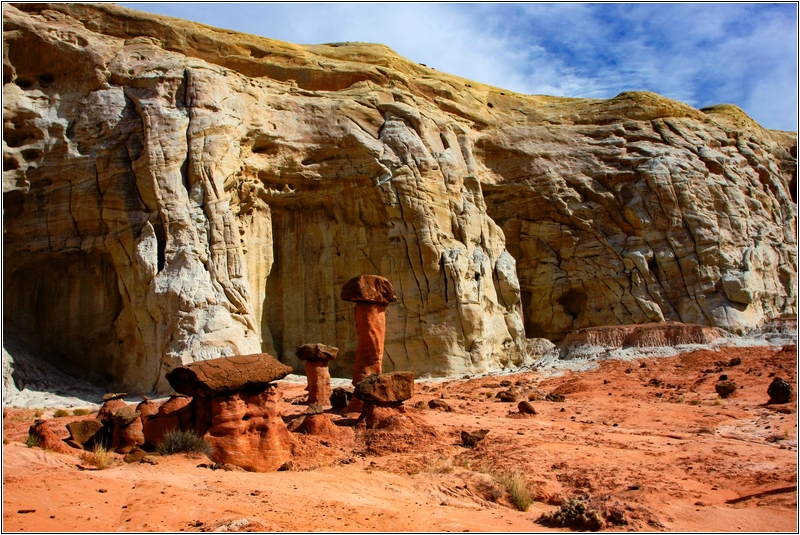 On Hwy.89, only 25 mi west of Page, you will find,only 20 min from the parking lot (N37.06.03-W111.52.26)these beautiful hoodoos.Best time to photograph from late afternoon until sunset.